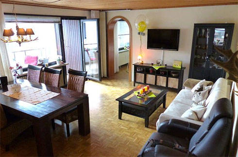 Unsere Fewos liegen im 2. Obergeschoss einer gepflegten Wohnanlage. Sie sind mit 55 qm und 33qm sehr geräumig und bietet 2-6 Personen Platz. Auf den beiden überdachten Sonnenbalkons können Sie den Ausblick auf den Burgberg genießen, grillen oder sich auf unseren Liegen sonnen. Im gemütlichen Wohnzimmer der Whg. Nr.1 befindet sich die Doppelschlafcouch neben Fernsehsessel und dem Essplatz. Das Schlafzimmer verfügt über 2 Einzelbetten und einem großen Kleiderschrank. Weiterhin gibt es 1 Badezimmer mit Wanne/Dusche und eine komplett ausgestattete Küche mit Geschirrspüler, Ceranfeld, Kühlschrank mit Gefrierfach usw.