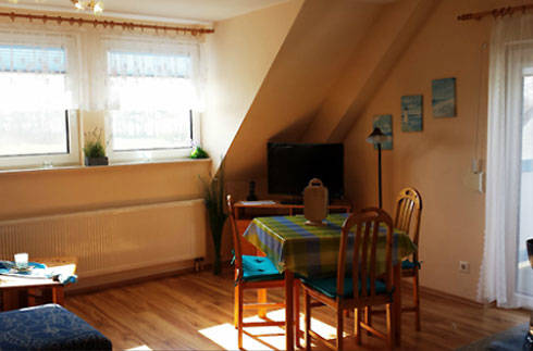 Die 3 Ferienwohnungen befinden sich idyllisch gelegen auf der südlichsten Spitze der Halbinsel Mönchgut inmitten des Biosphärenreservates Südost-Rügen umgeben von reizvoller Natur, Ostsee und Greifswalder Bodden. Die Wohnungen (alle mit Ausblick auf den Greifswalder Bodden und den Zicker See) sind mit Wohnzimmer, 1 - 2 Schlafzimmern, Küche bzw. Küchenzeile, Bad mit DU/WC, TV und Radio ausgestattet. Ein PKW-Stellplatz ist ebenfalls vorhanden. Zwei der Ferienwohnungen haben eine Terrasse. Die liebliche Hügellandschaft der Halbinsel Mönchgut gewährt atemberaubende Aussichten auf verträumte Fischerdörfer, grüne Wiesen und Wälder, Seen und Buchten. Das Ostseebad bietet ideale Bedingungen für Kinder, romantische Rad- und Wanderwege, eine Segel- und Surfschule, ein Schwimmbad mit Wellnessbereich sowie Veranstaltungen aller Art. Wer Sonne und Meer sucht, wird einen Platz voll Frieden und Entspannung an den weitläufigen Sandstränden Thiessows finden.
